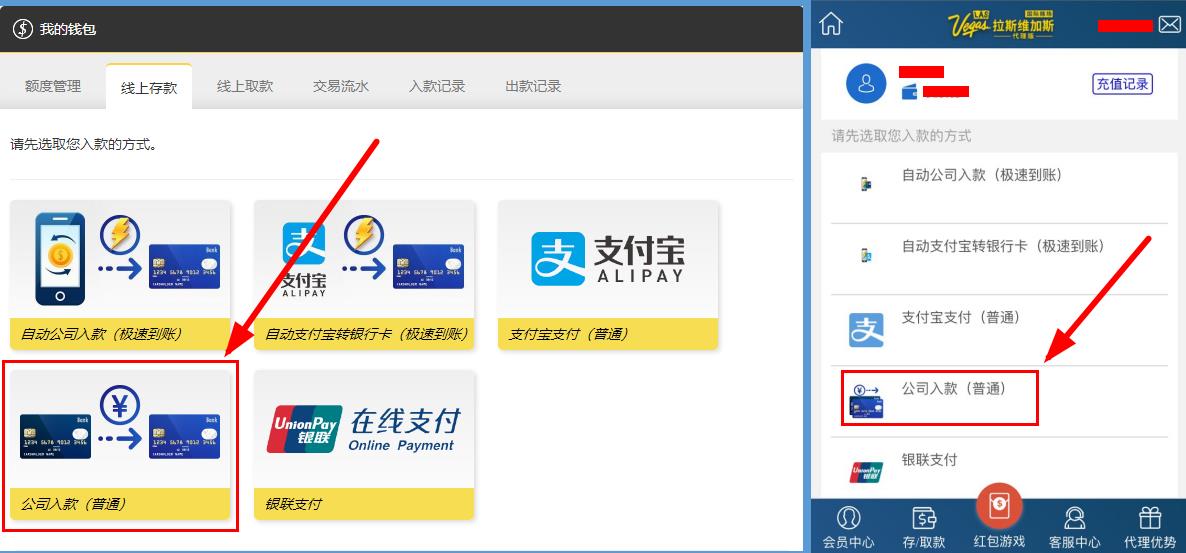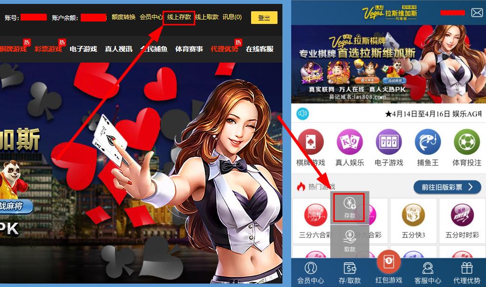 电脑用户:进入拉斯维加斯官网,登入会员账号后,点击线上存款。